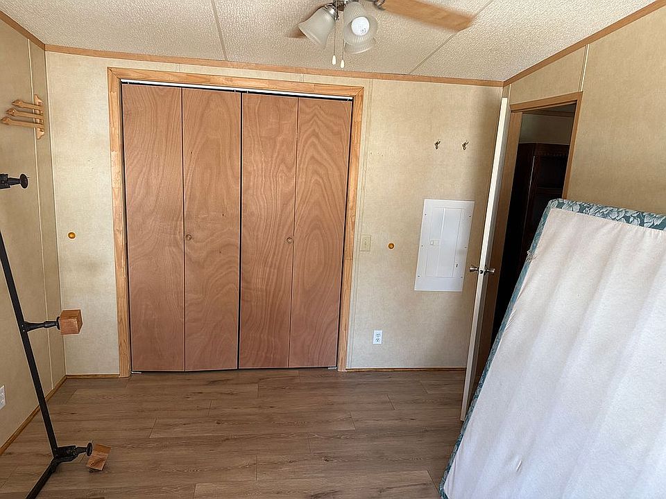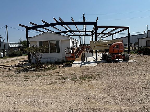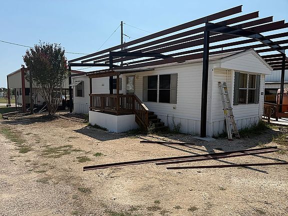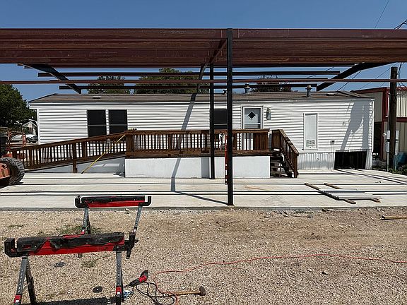 New to market. This home has all new flooring thru out. The kitchen has beautiful custom butcher block count tops. The bathroom has a handicap walk-in bath tub with a shower attachment. This home is available immediately and has just had new concrete & a new structural steel cover added to the property. We are working on landscaping this beautiful corner lot. This is a must see property. It is reasonably price. Property includes everything above the ground & the lot is leased.