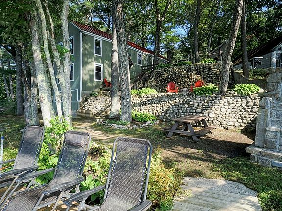 OPEN HOUSE 9/14 CANCELLED Here is your opportunity to own a year round waterfront home on peaceful Pettingill pond in the heart of Windham. This gem is located 3 minutes from restaurants and shopping but when you arrive you feel at home and away from it all. The property features 85 feet of clean private water frontage and 2 docks When you walk in, the open concept top floor features a large open Living room dining area with panoramic views of the pond, a woodstove on a stone hearth a central kitchen, large primary bedroom, laundry & bathroom. Downstairs has an additional living room, 2 bedrooms with views and a 1/2 bath. There is also an unfinished section of basement that would be great for storage or a workshop. You'll have more storage in the attic and space underneath for kayaks and water toys. The outdoor living space has 3 terraces with lovely stonework and plenty of space to congregate with a beautiful granite and stone fireplace on the shoreline, right next to the dock. Property being sold mostly furnished.. Included with the house is an additional lot across the road (127 Anglers) which allows for plentiful parking, storing your big toys and stacking firewood. Don't miss out on this rare opportunity!