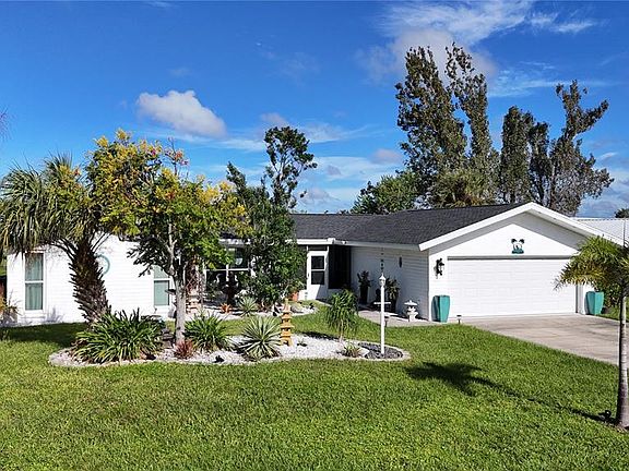 ***MOTIVATED SELLER**3D Virtual Tour** Welcome to Your Florida Paradise in Rotonda West — a sought-after, deed-restricted golfing community — this beautifully remodeled 2-bedroom, 2-bath, 2-car garage home is perfectly situated on a tranquil freshwater canal lot. SOLD FURNISHED! With a new roof installed in 2022, this move-in-ready gem offers the ultimate blend of comfort, charm, and Florida lifestyle. As you arrive, you’ll be greeted by a long driveway and lush tropical landscaping, complete with brick accents, a peaceful fountain, and a charming pergola with twinkling fairy lights that create magical nighttime ambiance. The cozy, screened-in front porch makes the perfect spot to enjoy your morning coffee while soaking in Florida’s sunshine and serenity. Step through the decorative front door into a warm and inviting interior featuring soaring tongue-and-groove ceilings with wood beam accents and ceramic tile flooring throughout. A wall of 9 windows overlooks the canal, flooding the living space with natural light and showcasing picturesque water views. This home offers multiple areas to relax or entertain: The spacious living room with charming reading nook, a bright dining area, perfect for enjoying home cooked meals and the Florida Room, complete with a family room and adjacent bar area - ideal for movie nights, entertaining guest, or just unwinding after a long day. The eat-in kitchen has been tastefully updated and features ample counter and cabinet space, a closet pantry, coffee bar, and a pass-through window to the Florida Room. All newer stainless steel appliances are included! Enjoy peaceful morning views from the quaint dinette overlooking your landscaped courtyard. Off the kitchen, you’ll find a large laundry room with additional storage, built-in desk, and a quiet spot for a home office. The spacious master suite offers a huge walk-in closet, updated en-suite bath, and gorgeous canal views — imagine waking up to sparkling water every morning! The guest bedroom features a walk-in closet, ceiling fan, and easy access to the well-appointed second bath — a perfect setup for visitors. Step outside and embrace Florida living at its finest. The fully fenced backyard features 3 open patios, perfect for dining al fresco, gathering with friends, or cozying up by the firepit. Palm trees, solar lighting, and meticulous landscaping create a private, tropical oasis. Love the outdoors? Fish or kayak straight from your backyard! Additional landscaping details include curbing, pebble rock, cactus, aloe, crotons, palms, and lighting throughout the property — a true gardener’s dream! Living in Rotonda West means enjoying access to 5 golf courses, the expansive 165-acre Broadmoor Park with its 8,000 sq ft Community Center, walking trails, lakes, and more. You’ll also find tennis courts, playgrounds, great restaurants, shopping, and just a 20-minute drive to the pristine Gulf beaches of Manasota Key and Boca Grande, with world-class boating and fishing in nearby Gasparilla Pass and the Gulf of Mexico. Whether you’re seeking a winter retreat, investment opportunity, or full-time residence, this home offers versatility, value, and the Florida lifestyle you’ve been dreaming of.