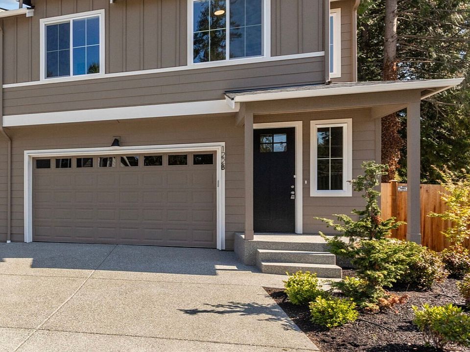 This home is graciously sited off the main road and backs to tree lined greenbelt. 4B is a featured premium lot at Lauren Lane. This home boasts the SE Corner of the development and has the most amount of privacy on the back patio. This newly built townhome shares just one wall and is a great alternative to the typical 3-story townhome or single level condo. Centrally located between Mill Creek Town Center and Canyon Park. Lovely primary bedroom served by attached full bath with dual sinks + surprisingly large closet. Every home features a patio and fully fenced backyard. Full size side by side two car garage and full driveway for parking. Heat pump/AC for year round comfort. 10K Buyer Bonus at Lauren Lane!