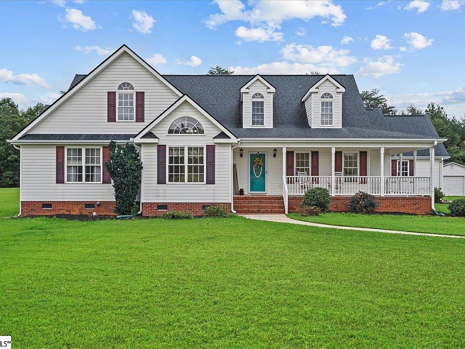 Discover country living at its finest just 15 minutes from downtown Easley! This beautiful 3-bedroom, 2-bath home sits on a spacious 5.58-acre corner lot, offering privacy, functionality, and room to grow. The inviting wrap-around porch and vaulted ceilings create a bright, open feel the moment you step inside. The main level features a comfortable layout with 9-foot ceilings, a large living area wired with a surround sound and home audio system, and a central vacuum for added convenience. The primary suite includes a walk-in closet, double vanity, and jetted tub for relaxing at the end of the day. A large walk-in laundry room and a versatile bonus room provide extra space for work or play. Outside, you'll find a true two-car garage, plus an 880 sq. ft. detached workshop perfect for hobbies, storage, or equipment. With plenty of parking, a security system, and a peaceful country setting, this home offers the ideal blend of comfort and practicality. Enjoy the best of both worlds quiet countryside living with the convenience of nearby Easley amenities.