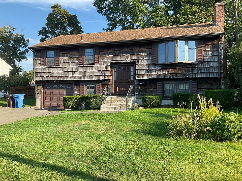 Raised ranch that offers 3 bedrooms,1.1 baths. kitchen/ dining room combo with slider to private deck overlooking nice green yard. Spacious living room with bay window and brick fireplace.  Hardwood floor throughout the main level, that was just freshly painted.  Lower level offers family room with sitting area ,and half a bathroom.  Gas heat and hot water. Home is located across from Batterson Park Pond.