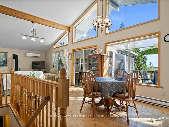 Welcome to your own piece of waterfront paradise on beautiful Hay Bay. This charming elevated bungalow offers the perfect blend of comfort and relaxation, with breathtaking views and direct access to some of the best boating and fishing in the area. Enjoy peaceful mornings and stunning sunsets from the large deck overlooking the water, or take a short boat ride to Picton Harbour where you can explore local restaurants and wineries. Inside, the home features an inviting open concept layout that seamlessly connects the kitchen, living, and dining areas, accented by warm exposed beams and a cozy propane fireplace for those cool evenings. The sunroom just off the dining area is the perfect spot to unwind and take in the view year-round. The main level offers three comfortable bedrooms, including a primary suite complete with a private three-piece ensuite. The fully finished lower level extends your living space with a spacious rec room featuring another propane fireplace, ideal for entertaining family and friends. Outside, the property includes a detached double car garage, a generator hook up for peace of mind, and a newer ductless heat and air conditioning system to keep you comfortable in every season. Whether youre looking for a year-round home or the perfect waterfront getaway, this Hay Bay gem delivers a true blend of lifestyle, comfort, and adventure.