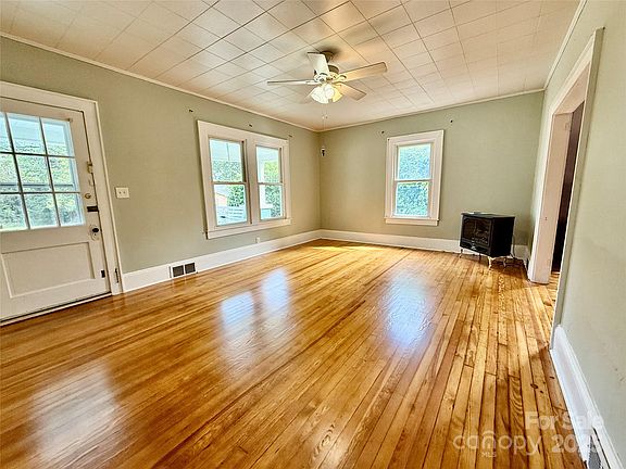 Here is the perfect Arts & Crafts bungalow you've been looking for! Located on a quiet street, yet within walking distance of downtown Forest City, and on a DOUBLE LOT. Featuring original, beautiful, warm hardwood floors. Brand new HVAC just installed in June 2025. Large, natural light-filled living room has gas fireplace for backup heat or ambiance. Three bedrooms, two baths, kitchen, living room, dining room, and laundry are all located on one level. Double garage too! Bring your best friend: fully fenced back yard with relaxing deck is perfect for your doggos! Just a couple of blocks from the beautiful Thermal Belt Rail Trail. Zoned C-2, so this could be used for a business too!