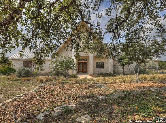 WHY YOU SHOULD BUY THIS LOVELY HOME! 1) Price reduced by $250K (just $220/sq ft) so you can afford to update; 2) 39 Solar Panels, Paid in Full on 12-16-19, average monthly bill was $181 in 2019 vs $50 in 2020; 3) minimal "yard" care; 4) Mystic Shores' RV & boat storage plus boat ramp on Canyon Lake; 5) Located on Cul-de-sac with just 4 homes And is 5 mi to the boat ramp and 6 mi to the junction of FM 306 & US Hwy 281, 30 min to Loop 1604 in San Antonio. The Great Room has Cathedral Ceiling with two fans, a wood-burning fireplace, wiring for 5 wall-mounted speakers, and cable to TV satellite receiver. There are two sliding glass doors to the deck. Deck faces West so you can see hills and beautiful sunsets. Two Awnings, each operated by a switch, mostly cover the deck. The Master Bath has large tub, separate shower and large walk-in closet. Kitchen has ample counters and storage space, a bar sink and walk-in pantry. All Windows are double pane with Low-E film and roll-down shades. The 2-ton and 4-ton heat pumps keep house cool in the summer and warm in the winter. Safety features include one handicap shower, 2 water heaters and wide doorways. Come View this Lovely Home and take advantage of the huge price reduction!