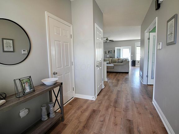 This beautiful, move-in ready 3-bedroom, 2-bathroom ranch has been meticulously updated. With new flooring and fresh paint throughout, the open floor plan and 9-foot ceilings create an expansive and inviting atmosphere. The kitchen offers abundant cabinet space, new quartz countertops and decorative tile backsplash, butcher block island, DW '21. Convenient first-floor laundry. The large owner's suite is a true retreat, featuring a double vanity, whirlpool tub, walk-in shower, and a generous walk-in closet. Garage door opener '24. Natural gas generator ensures peace of mind. Finished basement offers a family room and home office. Ideally situated just minutes from Interstate 70 and downtown Pataskala, this home is located for easy access to everything you need. Schedule your visit today!