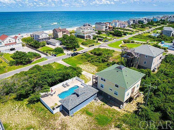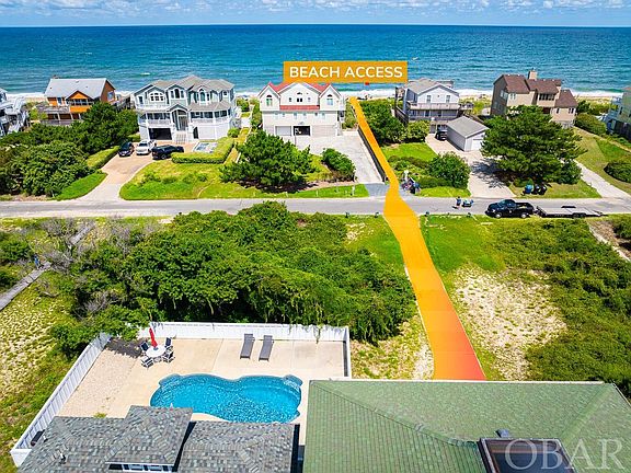 Welcome to your dream semi-oceanfront beach house in Duck, where luxury meets coastal charm. DIRECTLY across from the beach access, you can't ask for a more ideal location! This stunning four-bedroom retreat boasts spectacular ocean views, perfect for those seeking a serene escape. Updated with modern amenities, the house features an open-concept reverse floor plan with the updated living/kitchen/dining area upstairs boasting plenty of natural light and breathtaking vistas of the Atlantic. You’ll find all four bedrooms on the lower level, each thoughtfully designed to provide comfort and tranquility. Two bedrooms offer deck access overlooking the ocean for those quiet morning moments. Step outside to your own sparkling private pool and cabana complete with tiki bar, TV and lounge area, full size fridge and wet bar, and full bath. This additional space is perfect for entertaining or simply unwinding after a day at the beach. Whether you're lounging by the pool, dining al fresco, or taking in the sunset, this beach house promises an unforgettable coastal living experience.