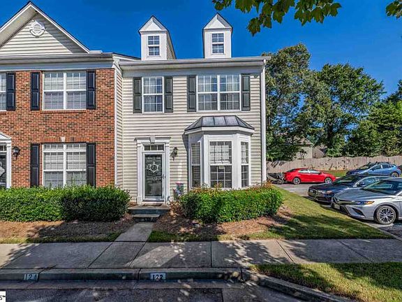 Charming Townhouse, Great Location, and Move-In-Ready! Donât miss this rare opportunity to call this âMove-In-Readyâ spacious corner unit home. Cobblestone Cove is a desirable neighborhood located in the heart of Mauldin. This 2 bedroom, 2.5 bathroom end unit townhome provides a peaceful, low maintenance living and is walking distance to the community pool. As you enter the home, you will notice the 9-foot ceilings throughout the first floor. To the right you will find a spacious dining room with a bay window, and an additional window on the side for added natural light. Off the dining room is a large kitchen with a window, upgraded cabinets and a breakfast area. The kitchen opens to the spacious living room, which provides bright sunlight, custom drapes, and opens to the patio where you will find an outdoor storage unit with electricity. While on the patio you can enjoy additional privacy with the side and rear fence. The laundry is conveniently located on the first floor in an addition to a half bath and coat closet. Upstairs has two huge bedrooms and each bedroom has their own private bath. The master suite has a vaulted ceiling with a private bathroom featuring a garden tub/shower combination and two walk-in closets. The secondary bedroom also has vaulted ceilings with its own bathroom and a spacious closet. This home features two parking spaces with additional guest parking available, a new roof (2019), and regularly scheduled, preventative maintenance on the HVAC units. Did I mention this is a one owner owned home? Very well maintained. Call today for a showing of this beautiful home. It is ready and waiting for you!