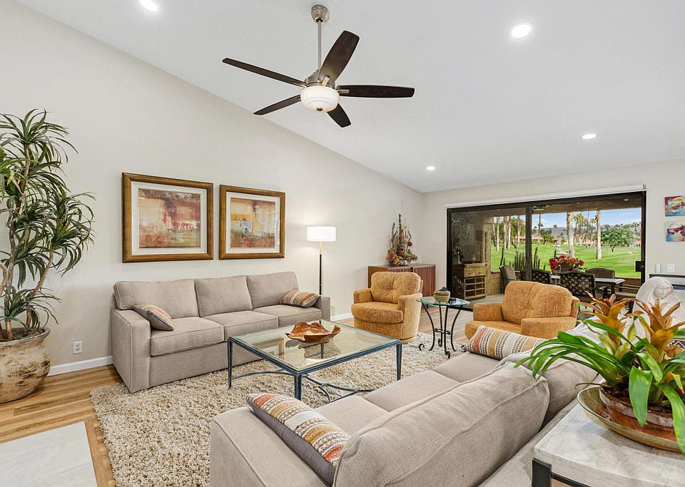 Tastefully Remodeled Chaparral Country Club Gem!Experience refined desert living in this beautifully remodeled 3-bedroom, 2-bath condo offering 1,950 sq. ft. of open, elegant design. Thoughtfully reimagined, the renovation includes the removal of interior walls to create a bright, expansive living area, a stunning new kitchen with premium finishes, and two luxurious, spa-inspired bathrooms--all crafted with exceptional quality.Enjoy breathtaking northwest views across two lush fairways, framed by graceful palms and majestic mountain backdrops. Nestled within the highly desirable Chaparral Country Club, residents enjoy exclusive amenities including golf, tennis, pickleball, a state-of-the-art fitness center, and a full clubhouse with dining, cocktails, and a vibrant social calendar.Located just minutes from the famed El Paseo shopping and dining district and a short 25-minute drive to Palm Springs Airport, this home perfectly blends convenience and luxury. The property includes a full two-car garage, an additional golf cart garage, and even a golf cart--ready for your next round! Offered partially furnished, this exceptional home invites you to enjoy the very best of desert living. Come see for yourself--your desert experience couldn't be more perfect!