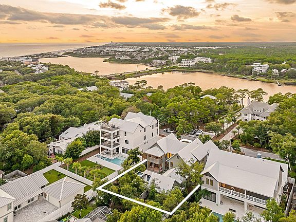 Exquisite Coastal lake house at 122 Camp Creek Rd South! Discover the epitome of coastal luxury at 122 Camp Creek Rd South, a custom-designed masterpiece by renowned architect Greg Jazereyi. Nestled on a tranquil, oak-canopied street on the coveted east end of 30A, this serene lakehouse blends sophisticated design with the natural beauty of its surroundings. Positioned just one tier back from the rare Coastal Dune Lake, the property features a brand-new dock directly across the street, offering effortless access to fishing, paddle boarding, kayaking, and the Gulf of Mexico via the lake's outflow. This expansive residence boasts 5 bedrooms, including two luxurious primary suites, and 5.5 bathrooms, designed for ultimate comfort and privacy. The first floor welcomes you with an open- concept layout, featuring 20-foot ceilings, wood-paneled walls, and large windows that flood the space with natural light. The gourmet kitchen is a chef's dream, appointed with custom natural oak cabinetry, Taj Mahal quartzite countertops, an oversized island, premium Thermador appliances, and a walk-in pantry. The adjacent living room, accented by white oak ceilings and reclaimed beams, and fireplace flows seamlessly to the outdoor living area through a large Eurowall slider. The outdoor oasis is an entertainer's paradise, complete with a covered living area featuring an outdoor fireplace, white oak ceilings, a summer kitchen with a grill, ice machine, and beverage cooler, and a heated saltwater pool and hot tub surrounded by shell stone pavers and low-maintenance artificial turf. Connected to this space is a charming carriage house, offering a cozy guest retreat with shell stone tile floors, vaulted white oak ceilings, a kitchenette, and a full bathroom.