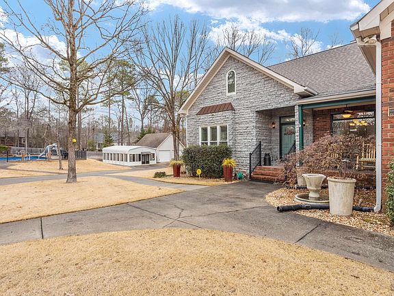 Welcome to this stunning full brick home in Saddle Lake Farms, nestled on 1.54 acres at the corner of a peaceful cul-de-sac. Featuring 4 bedrooms and 4 baths, this custom floorplan offers spacious living with recessed lighting, a marble gas log fireplace, and formal dining. The large kitchen boasts butcher block counters, granite accents, double ovens, ice maker, and breakfast bar, opening into a cozy keeping room. The main level includes dual primary bedrooms with luxurious baths, including soaking tubs, double showers, and walk-in closets. Additional guest bedroom and full bath on the main. Upstairs, find a private en suite with walk-in closet and attic access. Enjoy the sunroom, open deck with gas grill, and an inground saltwater pool with a slide. A detached building serves as a fan cave or rumpus room, along with a 2-car garage with half bath, attic storage, and workshop potential. RV hookup, plenty of driveway space, and perimeter fencing make this home perfect for entertaining!.