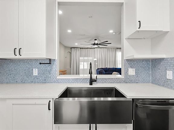 Fully remodeled kitchenSleek quartz countertopsWater viewsNew high-end appliancesDeep extended stainless-steel sinkMosaic backsplashAdditional privacy closet