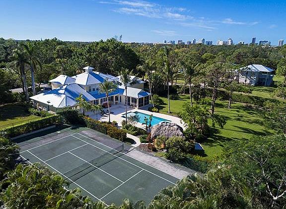 A private park like setting with everything the discerning Pine Ridge resident is looking for. This custom built estate home sits on an oversized corner lot of 1.27 acres with fantastic landscaping, pool, spa, outdoor screened lanai with built in kitchen, authentic chickee hut, tennis court and large green space. This estate was designed perfectly for entertaining and everyday family living. This home features 6 bedrooms w/ 5 en suite, 5 full bathrooms and 2 half baths, 3 car garage, media room, large den, gourmet kitchen with open great room and walk in pantry and extended breakfast bar, breakfast room with bay windows, large master with custom closets, formal dining room, bar, marble floors and much more. The first floor luxury master suite with sitting room overlooks the tranquil grounds and pool area with his and her closets. Pine Ridge is a rural setting centered in the middle of Naples close to Waterside Shops, Mercato, dining and the famous sugar sand beaches on the Gulf of Mexico. See Remarks