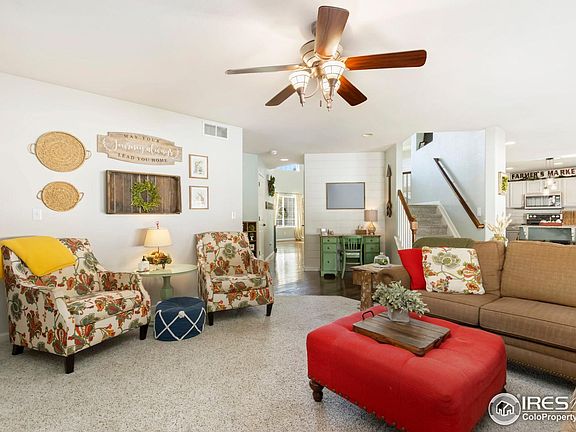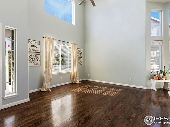 Welcome home to the perfect blend of comfort and Colorado living in the heart of Water Valley! From the moment you step inside, the soaring ceilings and beautifully sunlit entry welcome you to a spacious main floor featuring a double sided staircase and a floor plan perfect for holiday entertaining. The updated kitchen and hardwood floors flow seamlessly into breakfast nook and family room featuring a gas fireplace. The main floor offers a half bath and laundry/mudroom leading to oversized 2-car garage. Upstairs, four spacious bedrooms provide room for everyone while the basement offers a versatile flex room with a half bath and built in storage/craft tables. The home has a new, expansive covered patio, perfect outdoor entertainment. The exterior has a fresh coat of paint (2024) as well as a fully fenced, expansive backyard and mature landscaping. This golf cart community offers walking trails just steps away as well as multiple community lakes for fishing, swimming, paddle boarding, parks, pickleball courts and much more. Take a short walk or golf cart ride to Pelican Lakes 27 hole golf course, restaurants or pool (available with membership). This home is a must see!