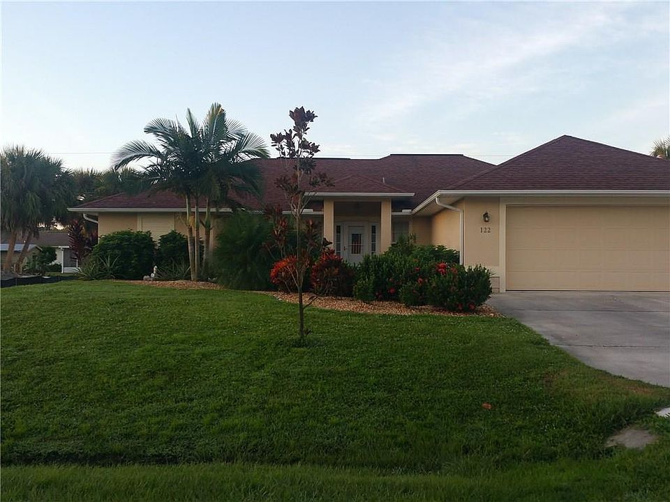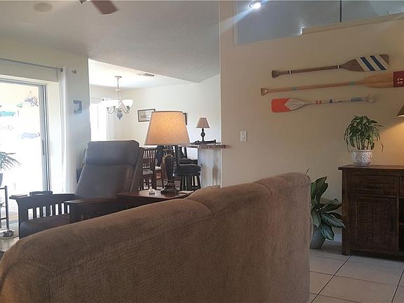 Open split floor plan w/vaulted ceilings in living, kitchen, dining and super-sized master bedroom w/ two walk-in closets. Den/office plus 3 bedrooms. Great open kit with bar counter and new stainless appliances, Screen porch, leads to the private pool.