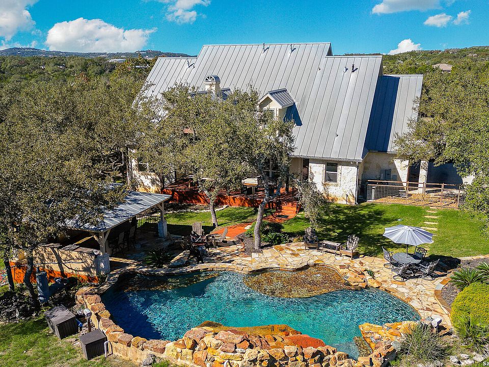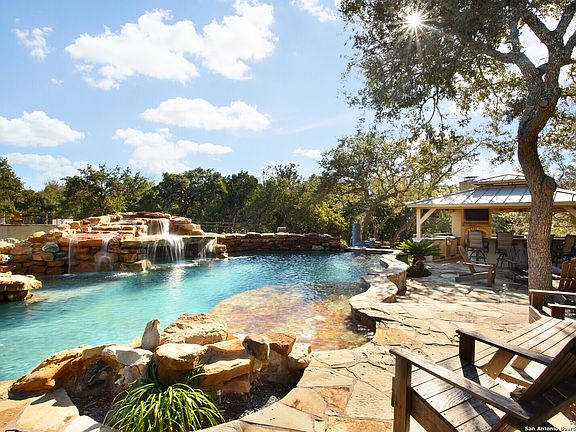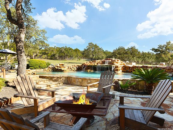 Experience the pinnacle of suburban luxury in Spring Branch's prestigious River Crossing subdivision. This expansive 4,234 sqft residence boasts 4 bedrooms, 4 bathrooms, with media room and two offices . It is complemented by a newly renovated interior featuring a new marble kitchen backsplash, freshly painted interior & exterior, new light fixtures, new carpet in upstairs bedrooms, and new cabinets & quartz countertops in all guest bathrooms. Step outside to a backyard oasis, where a stunning pool with a waterfall awaits, alongside an outdoor patio with a full kitchen and fireplace-perfect for entertaining. The home includes a generous three-car garage and rests on a sprawling 1.58-acre lot, offering both privacy and a sense of community. This property merges modern elegance with the tranquil farmhouse charm of Northern San Antonio. Convenient access to Highway 281 and local shopping centers adds to the allure, making it a coveted retreat for discerning homeowners.