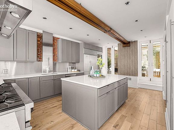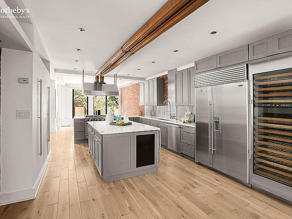 At the heart of the home, the chef’s kitchen impresses with bespoke cabinetry, a striking marble island, and professional-grade appliances by Sub-Zero and Miele. A true culinary and social centerpiece, it masterfully balances style and function.