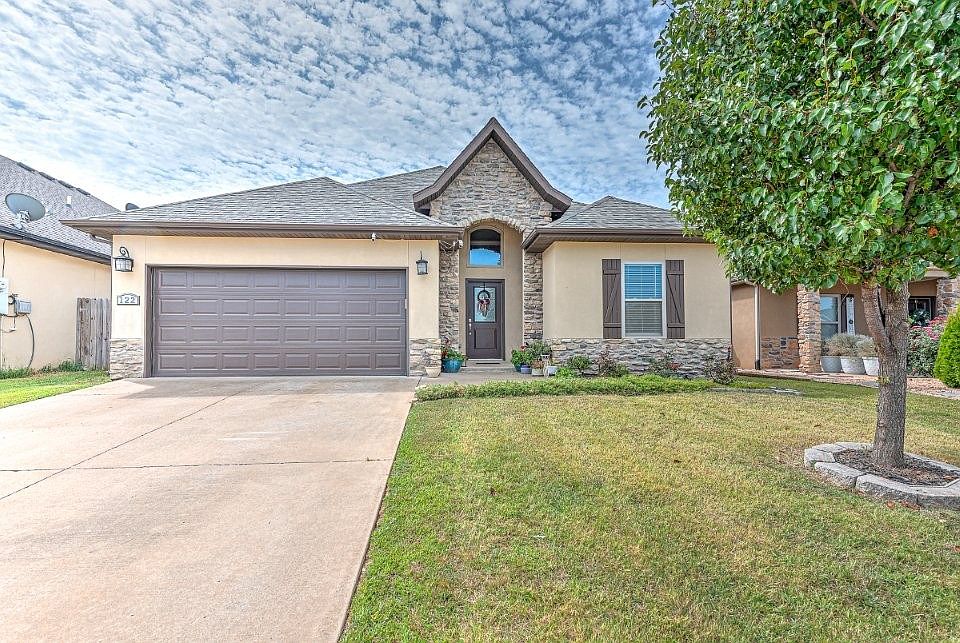 Charming Single Story Home! Ideal location. This 3-bedroom, 2 bathroom offers both comfort and convenience with a thoughtful layout and inviting living space throughout. The well-appointed kitchen includes granite countertops, upgraded backsplash, gas range, custom wood cabinets w/glass doors, gas fireplace in living area, EE appliances and tray & vaulted ceilings. The primary suite is a true retreat with a walk-in closet and beautiful ceramic tile shower. Outside privacy fence and covered patio, two car garage and storm shelter. Easy access to Veterans Park, Downtown Rogers, Rogers schools, all shopping and dining. Enjoy all the charm Rogers has to offer and make this property standout!