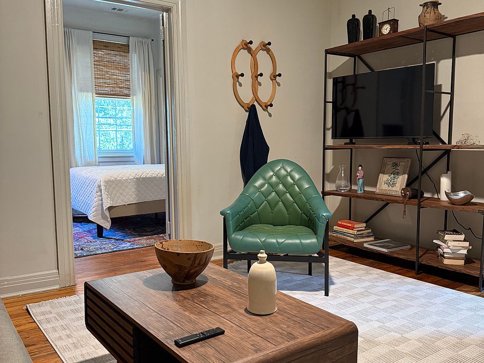 Furnished Apartment . Live on beautiful East JONES Street . 1 bedroom furnished apartment on East Jones St in the heart of historic savannah. Updated bathroom and kitchen. Great light. Walk to all restaurants, bars, parks etc. Washer and dryer. High ceilings and nicely appointed. Owner lives next door.