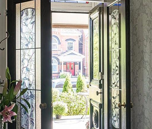 Stained glassOriginal hardwood floorsSweeping staircaseDecorative fireplaceHigh ceilingsSeparate formal dining roomKitchen with pantry