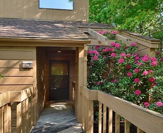 Enjoy pretty lake and mountain views all year long from a very quiet area in lush Emerald Crest. This townhome is a desirable end unit with an easy walkway to the front entrance. The living room and foyer have cathedral ceilings for a roomy feel, while the large windows and sliding glass doors keep it light and bright. Other features include a stone wood-burning fireplace in the living room, breakfast bar in the kitchen and a main level guest room and guest bath. The private master suite is on the lower level with a walk-in closet, deck and a spacious bathroom with jetted tub. Ownership comes with Sapphire Valley Resort amenities including golf, tennis courts, a fitness center, indoor/outdoor swimming pools, and access to Lake Fairfield, plus a playground/track, Horsepasture River picnic area, community center, ski slope, zip line and more! OWNER FINANCING AVAILABLE!