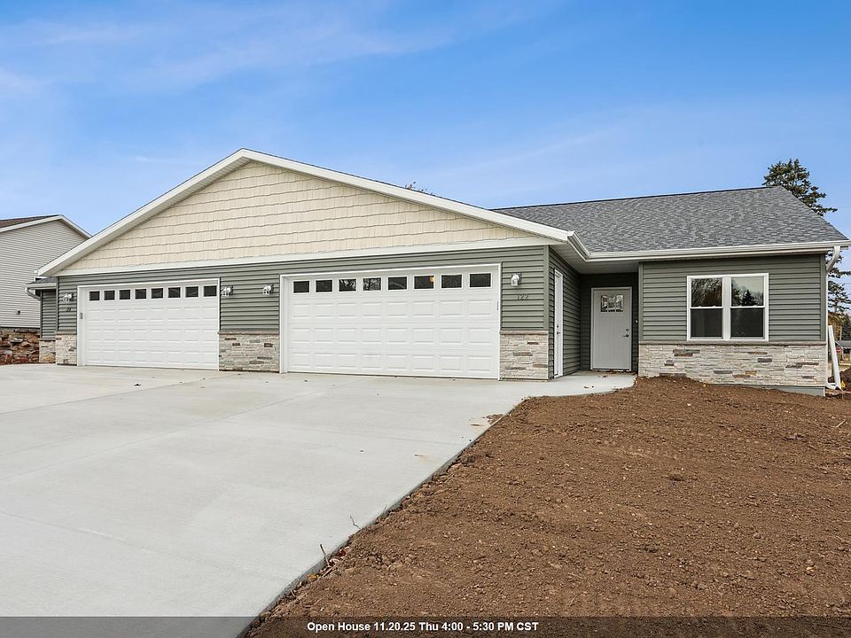 EASY LIVING W/NO STEPS! Stop in & see this QUALITY, BRAND NEW & FINISHED zero-lot line unit in the heart of Chilton. Nice walk to parks, downtown shopping & schools. ZERO-entry from garage & front door for handicapped accessibility. Enjoy over 1135SF of open concept w/large foyer to welcome your guests, coat closet & access to attached + EXTRA deep & insulated 2 car garage. Front BR for guests/office. Half bath hosts the laundry area as well. THE LIVING IS IN THE BACK w/spacious, open & light-drenched kitchen featuring a center island & dining area w/more windows...LOVE IT! Nice open concept. Living room has patio door out to a future deck. Primary ste w/8x5 walk-in closet & dual entry full bath w/shower stall. LL has egress window & full bath stubbed. NO CONDO or HOA fees. $3000 credit