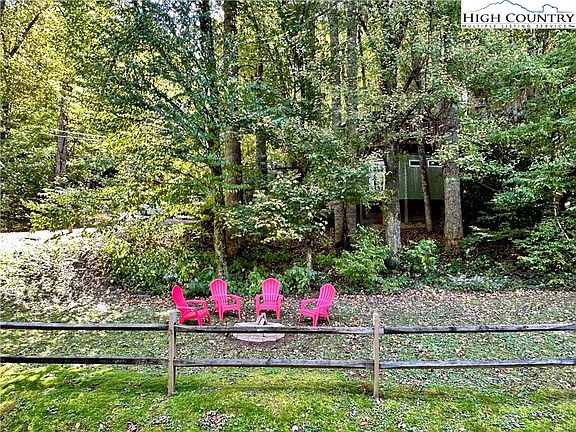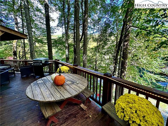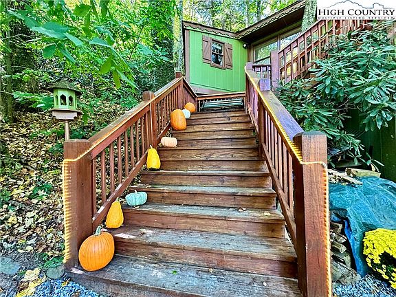 Step inside this enchanting mountain cottage where time slows down and worries disappear. Tucked away amongst native trees and plants, enjoy the sights and sounds of the High Country from the front porch. As you walk up the stairs to the front door, a large picnic table, grill station, and sitting area make this spot ideal for birdwatching, sharing a meal with friends, or simply being content to be in the beautiful Blue Ridge Mountains. Inside, you will find that this circular house made excellent use of space and was remodeled from the studs out in 2017! Butcher-block countertops and plenty of cabinet storage in the kitchen, a spacious built-in breakfast bar provide convenient dining without rearranging anything. The living area is warm and inviting. Cuddle around the wood-burning fire during the cool autumn nights and winter snows. The bedroom and bathroom are just around the corner. The spacious bathroom has a walk-in tiled shower, stackable washer, and dryer. Snuggle up in bed and get a good night's rest after an adventurous day of hiking, fishing, or rock climbing. The lower level of the home is ready for someone to complete the vision of an additional 1BR/1BA guest apartment: a separate entrance and extra parking are a few extra perks. The floor plans are in the photos; look at what this space could transform into. A unique feature of this property is an additional flat lot just below the home. Sit around the fire pit to star at the stars, share ghost stories, and roast marshmallows. This property is the spot if you are looking for easy access and plenty of parking. The parking area accommodates four vehicles, and the paved road remains clear all winter. Mill Ridge is a wonderful community that offers amenities like hiking trails, access to fishing on the Watauga river, an outdoor pool in summer months, tennis courts and a clubhouse to host parties and visit with neighbors. Short Term Rentals are permitted and is located between Boone and Banner Elk.
