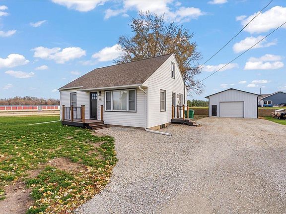 Ease of living awaits you in this attractively updated 1-1/2 story home. A generous living room with updated flooring and a focal wall with shiplap leads to an eat-in kitchen with tasteful counter tops and new appliances. A bedroom and HOFC (potential 2nd MF bedroom) are near the updated resort-style 3/4 bathroom. The upper level features a large bedroom with generous closet. The lower level has a mechanicals with laundry area, space for a future family room, and a future bedroom (egress needed). A 24 X 24 pole building completes the property with generous space for your parking and workshop area. Updates: furnace/central air, kitchen appliances, steps/railings, exterior doors, flooring.