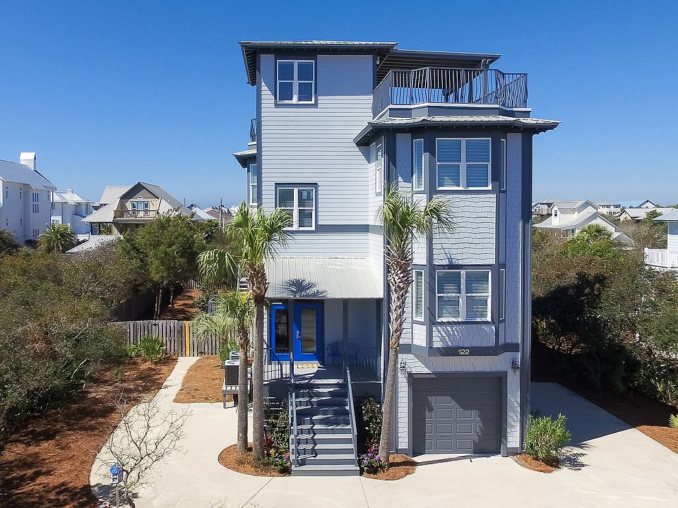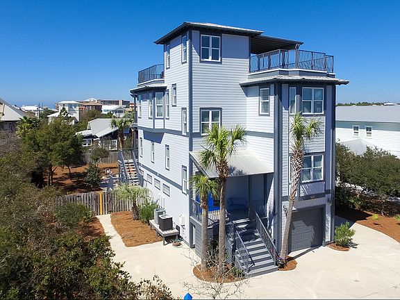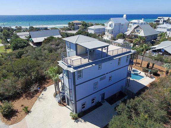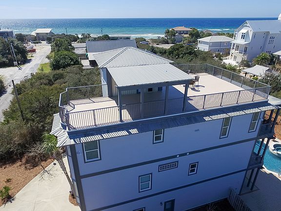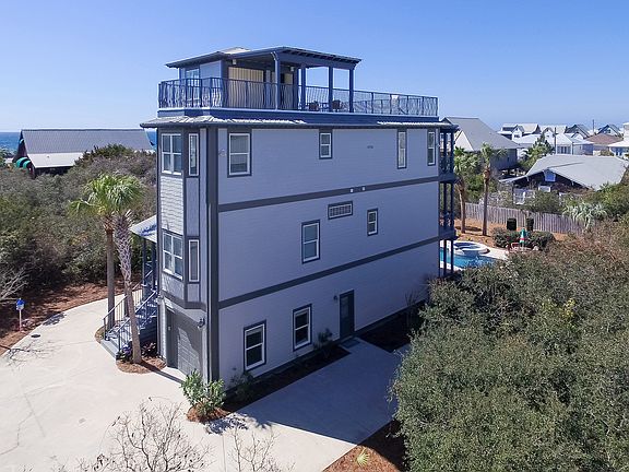 Gulf view! Newly painted, renovated, fully-furnished and rental-ready home on one quarter acre with generous pool, garage, residential elevator and panoramic Gulf of Mexico views is absolutely turn key. Two living areas makes this home perfect, not only for year-round living, but for the vacation rental market as well. The first floor features a spacious suite with living room area, kitchenette and bunk room. The second floor features three generous bedrooms. The third floor features gulf views from open concept architecture-living, kitchen, dining room areas, as well as a master suite. Balconies with gulf views overlook the pool and landscaped yard. The top floor entertainment terrace, which accommodates 25 or more people, has an unbelievable 360 degree view & captures the Gulf of Mexico. A quick one minute walk to the beach, just 100 yards.