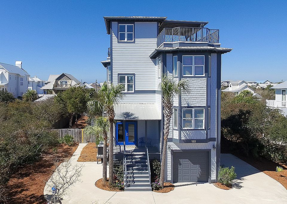 Gulf view! Newly painted, renovated,fully-furnished and rental-ready home on one quarter acre with generous pool, garage, residential elevator and panoramic Gulf of Mexico views is absolutely turn key. Two living areas makes this home perfect, not only for year-round living, but for the vacation rental market as well. The first floor features a spacious suite with living room area, kitchenette and bunk room. The second floor features three generous bedrooms. The third floor features gulf views from open concept architecture-living, kitchen, dining room areas, as well as a master suite. Balconies with gulf views overlook the pool and landscaped yard. The top floor entertainment terrace, which accommodates 25 or more people, has an unbelievable 360 degree view & captures the Gulf of Mexic