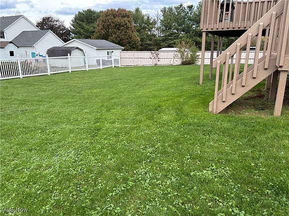 Located in the Cimarron Development in Columbiana where few homes go on the market! This beautiful two story with three bedrooms and 2.5 baths has only had two owners. First floor features include a foyer and stunning open staircase, a living room with gas fireplace and 10 foot ceilings, kitchen with recessed lighting, dining area, half bath and first floor laundry. All these rooms, except the master bedroom and master bath, have solid oak hardwood floors. First floor master bedroom with cathedral ceiling and master bath with jetted tub, separate shower and also a built-in vanity. Upstairs you will find two additional bedrooms and a full bath with double vanity, also two linen closets. There is a full basement that is 47X21 with a walk out that could easily be finished off. It also has a toilet and is plumbed for a bath. Oversized two car garage with pull down steps for storage above. Fenced yard. Large back deck with storage below. Front porch. Blacktop driveway. Updates include new carpet, laminate flooring, toilets and fixtures. Furnace and roof are newer.