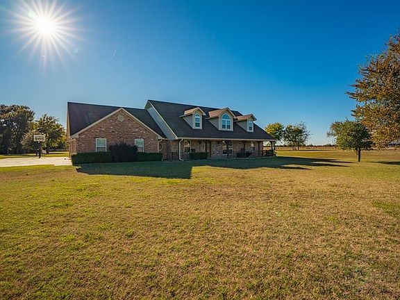 Dreaming of your Texas Horse property? This is it! Well maintained 3 bedroom, 2.5 bath home features a 5 stall barn that includes an air conditioned office, heated wash rack, large feed and tack rooms. Attached to the barn is a 160x60' covered arena with roping boxes, an additional outdoor arena that is 120x250'-both with LED lights. Pipe fence separates 4 pastures, each with running water to them. Large stocked pond, hot walker, loafing shed and well maintained Tifton 85 Bermuda Grass. The home is well thought-out and spacious, with vaulted ceilings, fireplace, Jack and Jill primary bath. Large closets, large utility room and coffee sipping porches.
