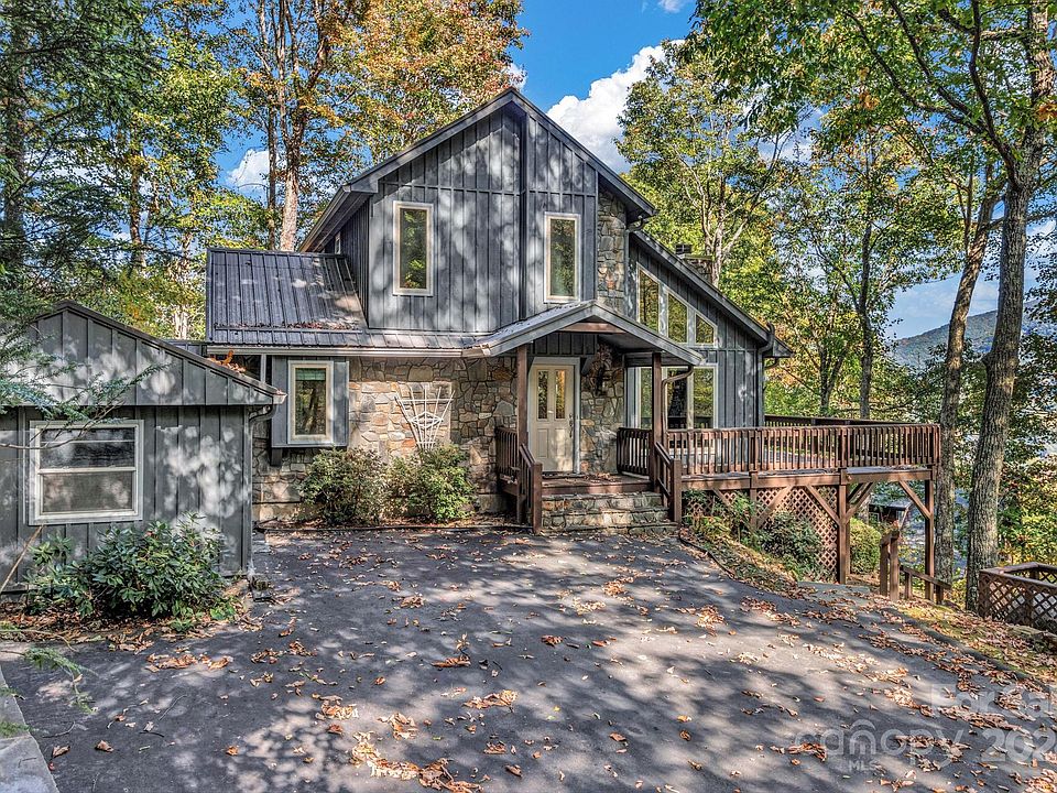 Discover your perfect getaway in this stunning mountain home, nestled in the heart of Maggie Valley. With breathtaking mountain views, this 2-bedroom, 2-bathroom with loft residence offers an open floorplan that invites natural light and breathtaking scenery into the home. Step inside to find a spacious living area that seamlessly connects to the dining space and a well-appointed kitchen, ideal for entertaining or cozy evenings w/ loved ones and even connecting to a screened in porch. The large windows frame picturesque views, creating a serene backdrop that changes with the seasons. Both bedrooms are generously sized, providing a peaceful sanctuary. Primary bedroom on the main. Other bedroom is upstairs w/ a full bathroom and loft. Outside, the expansive wrap around deck is perfect for enjoying morning coffee or evening sunsets, while the surrounding landscape offers opportunities for privacy, wildlife viewing, and relaxation. Whole house generator! Ask about all the upgrades/updates!