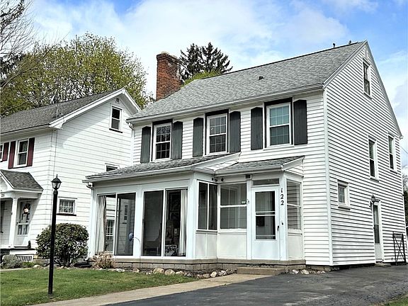 Come check out this beautiful, well-maintained Colonial in the highly sought after Winona Woods neighborhood in the West Irondequoit School District!! Conveniently located just minutes away from many shopping centers. As you walk in, you'll see a 3-season sunroom with sliding doors all the way around. Perfect for summer nights! From there you'll enter the house and find a large living room with a wood burning fireplace, built in bookshelves and hardwood floors. Off the living room, there is a dining room with a new sliding glass door to the back yard. Directly off the dining room is an updated kitchen with granite countertops and stainless-steel appliances. Upstairs you'll find 3 good size bedrooms and a full bathroom. spacious partially finished attic with much potential. You'll also find a bathroom on every floor. The Basement is finished with a half bathroom. The house is fully insulated which makes the gas and electric bill very low. Tear off roof 2012. Out back is a large, detached 2 car garage.
