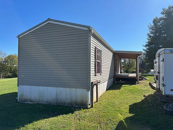 This well-maintained 2-bedroom, 1-bath manufactured home sits on a spacious lot within city limits, offering a blend of comfort, convenience, and value. Located in a desirable area just 15 minutes from Danville, and Stanford and approximately 20 minutes from Liberty, this property provides easy access to nearby shopping, dining, schools, and other local amenities while maintaining a peaceful residential setting. The covered front and back porches provide welcoming outdoor living spaces. A metal roof was installed less than 2 years ago for long-term durability and low maintenance. Insulated fiberglass underpinning helps improve energy efficiency and appearance. House-type gutters with downspouts were professionally installed. The property offers underground utilities for a clean and uncluttered exterior with 2 KU power meters for potential separate usage or expansion. There is also natural gas available on site. A 12X20 insulated storage building with a loft was added two years ago, ideal for storage, workshop use, or hobby space. A creek runs at the back of the property. This property offers the perfect balance of town convenience and country charm. With numerous updates and well-cared for appearance, it presents an excellent opportunity for a primary residence, downsizing option, or investment property. There is also an old block building and old mobile home at the entrance of this property.