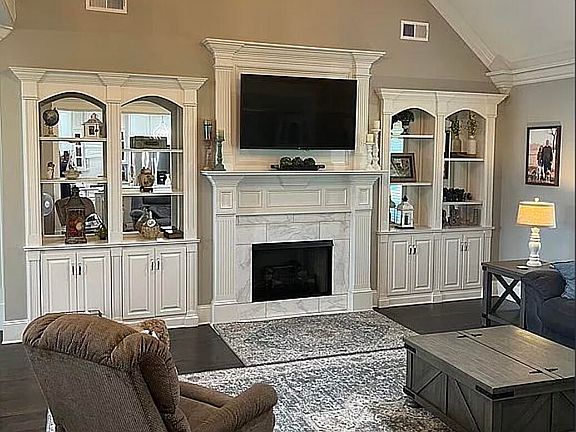 - Description: Vaulted Ceiling, Hardwood Floors, Built-in Cabinetry, Gas Log Fireplace