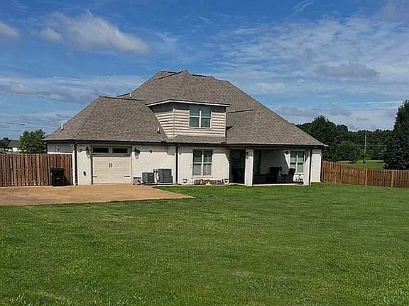 Unparalleled comfort in this stunning 4-bedroom, 2.5-bathroom home, nestled on over a 1/2 acre lot in sought-after Turner Estates! Every detail has been thoughtfully upgraded, from the pristine landscaping and designer lighting to the gleaming quartz countertops found throughout. Step inside to an inviting open floor plan, showcasing elegant hand-scraped hardwood flooring. The gourmet kitchen is a chef's dream, featuring a large island with seating, a gas cooktop, and a convenient pantry, all flowing seamlessly into a cozy breakfast nook and separate formal dining room - perfect for entertaining! Relax by the gas log fireplace, beautifully accented by mirrored built-in bookcases. The dedicated laundry room with a folding counter adds to the home's practicality. Escape to the luxurious primary suite, boasting a tray ceiling, a jetted tub, a double vanity, a spacious walk-in tile shower, and an expansive walk-in closet. This home also offers incredible convenience with a 3-car garage (one a handy rear-entry!), a covered rear 18x13 patio ideal for al fresco dining, and a fully-fenced backyard for privacy. For peace of mind, a 6-person storm shelter is located in the main garage. Tranquility of no rear neighbors, all while being just minutes from Jackson!