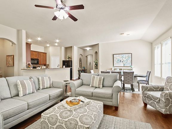 Welcome home to the this quiet community of Magnolia Ridge. This four bedroom two bath, ranch style, single story home is located on a quiet culdesac street on an oversized wooded lot. Upon entry into the home you are welcomed with dark laminate wood floors and neutral paint colors throughout. The kitchen offers a breakfast bar, oversized cabinets, gas range, microwave and fridge. The kitchen looks out into your formal dining area that is combined the living room space that is the perfect space for entertaining. The master bedroom offers an in suite bath with separate soaking tub an shower. At the opposite end of the home are the three secondary bedrooms and laundry room. Spend evenings on your back patio in the shade of your wooded lot and privacy of no back neighbors. The community has many walking trails, a splash pad and a park for the entire family to enjoy. Call to see today.