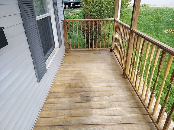 This two bedroom one bath home features a covered front porch and rear deck. The kitchen has updated cabinets and new vinyl flooring. The living room and both bedrooms have new carpeting. You can buy this home cheaper than you can rent it.