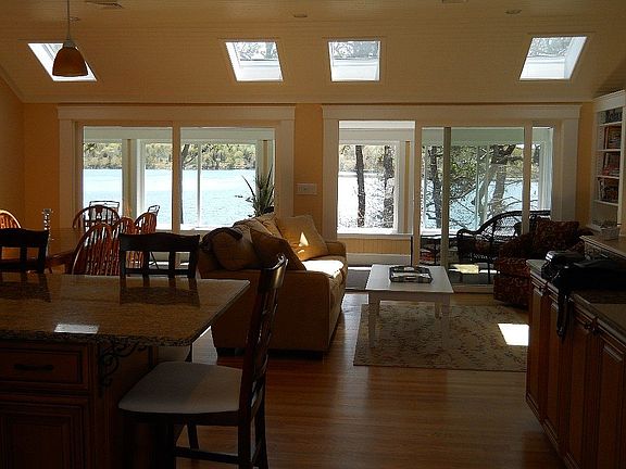 Waterfront living defined. Don't miss this tastefully renovated property with deep water access right from your brand-new, private dock! From sunrise to sunset, coffee to cocktails, you'll relish soaking in the stunning water views from your enclosed, sundrenched porch or cozying up to your living room fireplace with a good book. This turn-key home also boasts open-concept living, ideal flow for indoor/outdoor entertaining and a strong established rental history. What are you waiting for? Bring your flip flops and don't look back!