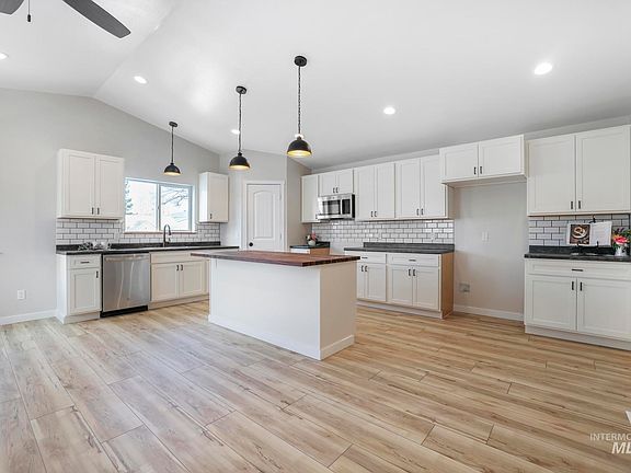 Welcome to 122 Michigan Street, Gooding, Idaho! BRAND NEW!! This beautiful 1380 square mid-sized home, 3 bed, 2 bath, large front porch will cater to those who value both comfort and efficiency in a single level house. The ample counter space, butcher block island, Stainless Steel appliances in the kitchen are sure to be appreciated by those who enjoy cooking and the vaulted spacious living and family room will make entertaining a breeze. The property is well-designed and will offer balance, functionality and style. In addition, approximately 10 ft RV Parking with pull through alley access, brand new "Old Hickory" 10X16 Shed and room to plant a garden is ready to go for spring. This home was built with pride by a small builder who will be there after the closing and beyond. 122 Michigan Street, Gooding, Idaho, will be a wonderful place to call home. BTVAI