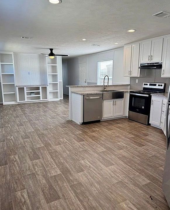 Welcome to The Landing in Pearland, where modern living meets southern hospitality in a beautifully designed, resort-style manufactured home community redefining the American Dream. This 3-bedroom, 2-bath home is thoughtfully updated with modern colors and stylish finishes throughout and features custom closets in all three bedrooms, a whole-house water filtration system, and a security system, offering both comfort and peace of mind.