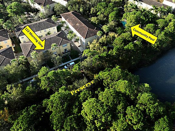 One of the best locations in Osceola Woods right across from the entrance into the preserve and a few feet to the community pool. Three story townhome with 3 BRS, Den, 3.5 Baths, and a 2 car garage. Almost 1,900 sq. ft. under air. All bedrooms and den have a new high quality laminate wood flooring, staircases and landing on third floor have brand new carpeting, and baths and main living area are tiled. Landing on third floor can be used as an office or computer area. High ceilings throughout. The front of the unit faces east with nice breezes off of the preserve and lake. Walk to downtown Abacoa, restaurants, stadium and ball fields. Only a few minutes to I-95 or the Turnpike. Unit is a pleasure to show.