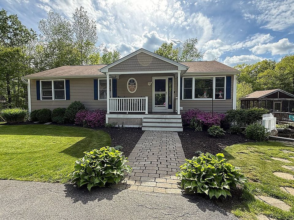 Charming Ranch Retreat on 3.25 Acres in Deerfield! This enchanting three bedroom ranch with a large four-season room & finished lower level is waiting for a new family! The first floor features cathedral ceilings, hardwood floors, granite countertops and an open concept living room, kitchen, and dining area that creates an inviting space for family gatherings and entertaining. The large four-season room off the back of the house surrounds you with nature’s beauty throughout the year. Three bedrooms and two full baths finish off the first level. Primary Bedroom has a private deck with hot tub (which is negotiable). The walk-out lower level has a large family room/teenage hangout and two other rooms. Never worry about power outages with the whole house generator ensuring your comfort year-round. Stay cool or warm with the two Mitsubishi mini splits. The oversized 3-car garage features a full second-floor for storage and a large attached shed, while the attached horse barn adds a special touch for equestrian enthusiasts. Dive into summer fun with a 24’ above-ground pool, complete with a sprawling deck and 15 X 11.6 custom built screen room—ideal for hosting friends and family under the sun. Unleash your inner chef with an awesome outdoor wood-burning pizza oven! Be prepared to cultivate your green thumb in the gorgeous one of a kind greenhouse surrounded by a yard of mature perennial gardens and fruit trees. A serene lavender field offers a tranquil escape, while whimsical art installations, including cairns and a fairy village, sprinkle magic throughout the landscape. Experience the perfect blend of modern comfort and rural charm in this unique property! Seller is not responsible for any commission due Buyers Agent Contact Seller @ 603-867-3885
