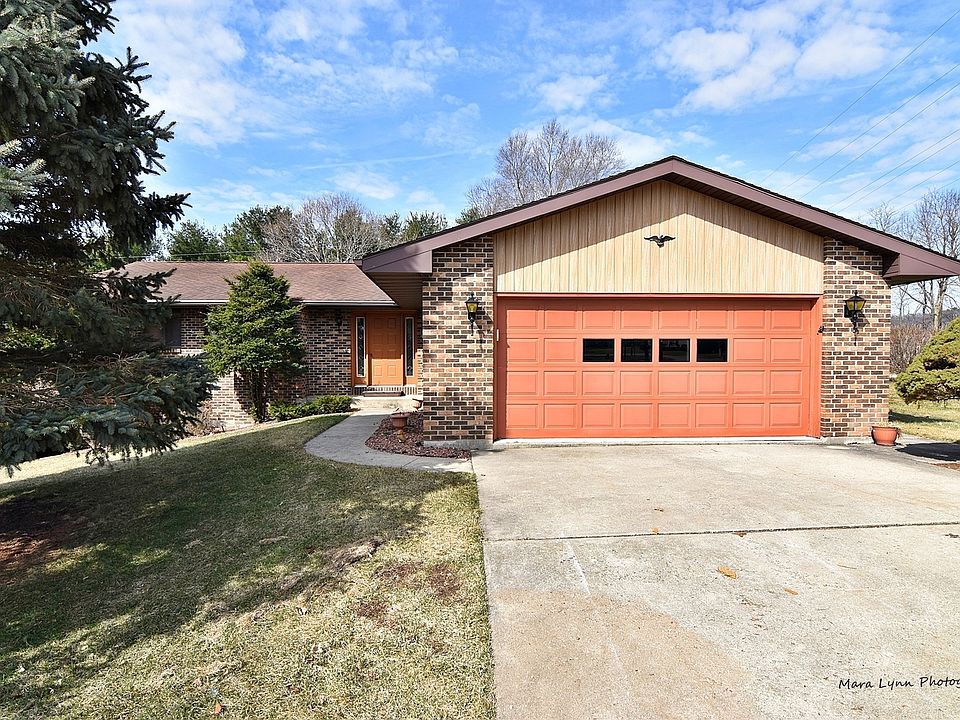 HARD TO FIND 3/4 BRICK, IN-TOWN WALKOUT RANCH ON NEARLY 1/2 ACRE WOODED LOT! Only two owners have occupied this charming hillside ranch which backs to Oregon Park West. Spacious living/dining room features vaulted ceiling, wood-burning fireplace, ceiling fan/light and panoramic views of the park-like back yard. Country kitchen highlighted by vaulted ceiling, skylight, stainless steel refrigerator & microwave, recessed lights and pantry. Master bedroom has private bath including new walk-in shower. Casement windows. First floor laundry w/cabinets. Partially finished basement has full bath w/whirlpool tub. New central air and newer furnace. Security system. Race deck flooring in garage and enclosed porch(w/fan light). Concrete driveway. Schools, park and recreation areas within walking distance!