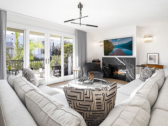 An extraordinary residence in the heart of West Hollywood, this front-facing corner home redefines modern luxury. Exquisitely reimagined with the finest finishes, the 2-bedroom, 2.5-bath floor plan is bathed in natural light and framed by wide-plank wood floors, creating a seamless blend of sophistication and comfort. The grand living room, anchored by a sleek fireplace, opens to an expansive balcony, setting the stage for effortless indoor-outdoor living. A culinary masterpiece, the kitchen showcases Miele appliances, imported Italian marble countertops, integrated refrigeration, and bespoke custom cabinetry a space designed for both everyday living and entertaining at the highest level. The adjacent dining area, with its own private balcony, extends the home's sense of refinement. The primary suite is a sanctuary unto itself, featuring a custom-designed walk-in closet and a spa-inspired en suite bath with dual vanities, a soaking tub, and a glass-enclosed shower. The secondary bedroom offers its own private en suite retreat, perfect for guests or an elegant home office. Additional luxuries include an in-unit laundry, two secure parking spaces, and access to a spectacular rooftop deck with sweeping panoramic views of the city skyline. Just moments from the most coveted dining, boutiques, and nightlife West Hollywood has to offer, this one-of-a-kind residence epitomizes timeless elegance and contemporary sophistication.