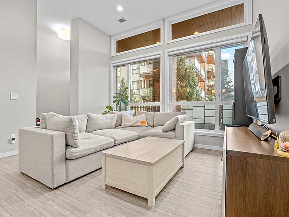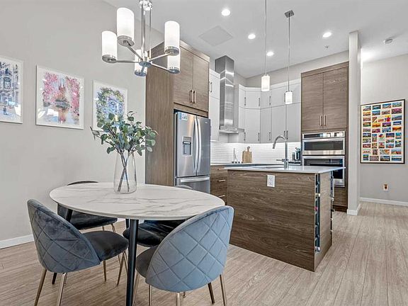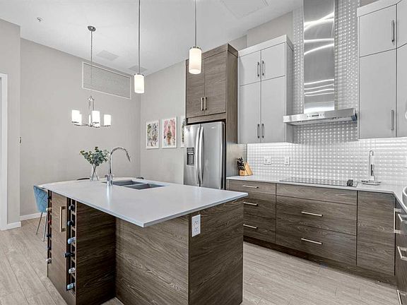 RARE FIND in Westman Village! This is not your typical condo, it’s one of the few GROUND FLOOR units offering private access and a spacious patio, creating a true sense of independence and ease. Perfect for those who love the convenience of condo living, but appreciate the feel of a home with its own front door. CONCRETE CONSTRUCTION means this unit is QUIET. Inside, every detail impresses with 11' ceilings, highlighting the stunning chef’s kitchen with two-toned cabinetry, built-in appliances, quartz countertops and large island with built-in cabinetry and wine rack. The open layout and luxury vinyl plank flooring add warmth and style throughout. The floor-to-ceiling windows (equipped with Hunter Douglas Silhouettes throughout & blackout blinds in the primary bedroom) fill the space with natural light. You’ll also appreciate the in-unit laundry room with tons of additional storage, one titled underground parking stall, and an assigned storage unit for added convenience. Experience serenity on the (almost 500 SqFt) patio, with partial lake views and feeling like you're tucked away in your own private alcove. Life at Westman Village means access to over 40,000 sq.ft. of resort-style amenities from indoor saltwater pools and hot tub to a state of the art fitness centre, golf simulator, wine vault, theatre, art and woodworking studios, and more. The complex offers 24-hour security, EV charging, car and pet wash, and beautifully landscaped outdoor areas with fire pits and gathering spaces. Right outside your door, explore a vibrant mix of shops and restaurants including Chairman’s Steakhouse, Alvin’s Jazz Club, Analog Coffee, and Diner Deluxe. You’ll also enjoy full lake access to Mahogany’s beaches, walking paths, and kayak areas. This one-of-a-kind ground floor unit combines luxury, comfort, and rare convenience in Calgary’s most coveted lake community. Opportunities like this don’t come often and once you see it, you’ll understand why.