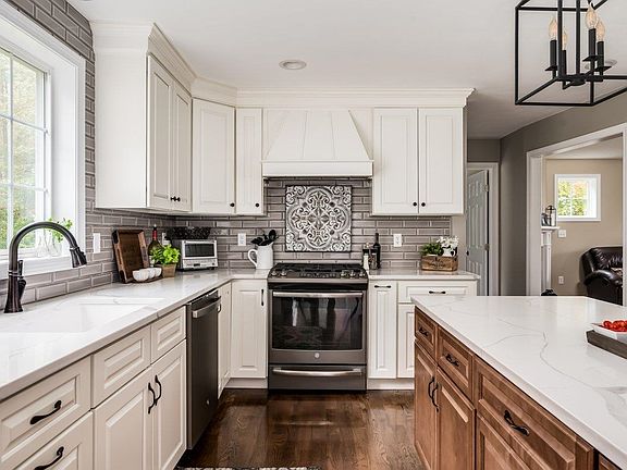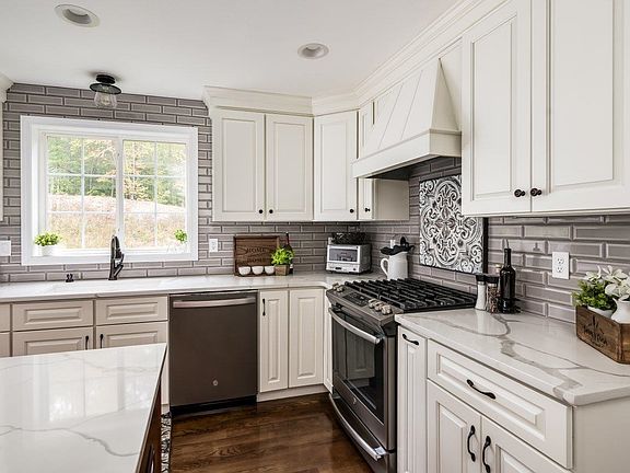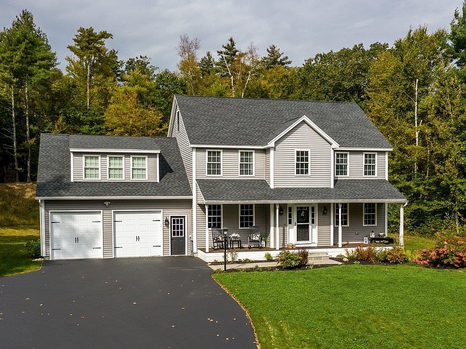 Welcome home to this better than new 4 bedroom colonial set on 2.83 acres. Inviting entry with an open staircase, great natural light and hardwood flooring throughout the 1st floor, staircase, and 2nd floor hall. Beautiful kitchen with soft-close cabinetry, quartz, tile backsplash, walk-in pantry, a large island with seating for 4 and an eat-in area with a slider leading to the oversized deck. Dining room with tray ceiling, wainscoting & crown molding and a living room with a cozy gas fireplace. First-floor half bath with an oversized vanity. Upstairs, the primary bedroom suite features two walk-in closets and a 3/4 bath with quartz vanity & tile shower. 3 additional generously sized bedrooms, full guest bath & separate laundry room complete the second floor. Full unfinished basement & walk-up attic provide storage space & potential for additional living space. Huge composite deck, private backyard and a front farmer's porch. 2-car attached garage with extra storage & an expanded paved driveway for plenty of parking. Upgrades include Nest thermostats, a whole-house water filtration, and a portable generator hook-up, just to name a few. High-efficiency heating system, central A/C, low-maintenance exterior, and composite decking. Enjoy the freedom of no HOA or covenants. Convenient access to Routes 125 and 101, 30 min to Manchester or Portsmouth, an hour to Boston or Portland & easy access to MA border. Showings begin November 12th. Reach out today to schedule a showing!