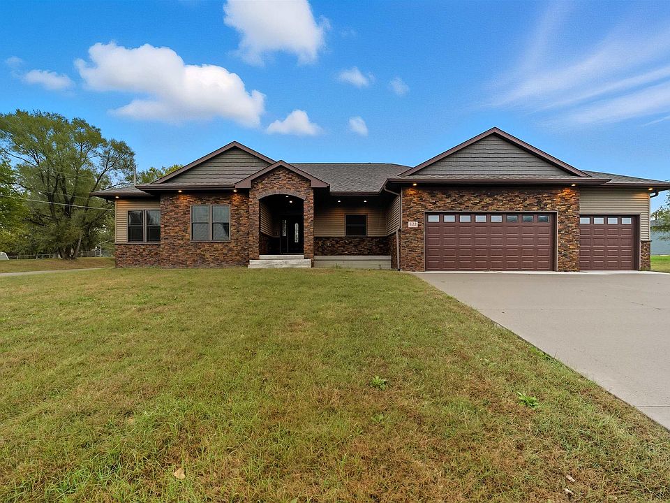 Welcome to this stunning custom home situated on an expansive corner lot just shy of ¾ of an acre. The main level offers a thoughtful layout featuring three spacious bedrooms, two of which include private en suite bathrooms. The primary suite boasts a massive walk-in closet and a beautifully appointed attached bath for ultimate comfort and convenience. Designed with functionality in mind, the main floor also includes a dedicated office and a laundry room for easy everyday living. The gorgeous kitchen is highlighted by a butler’s pantry and seamlessly flows into the living and dining areas, perfect for both entertaining and daily life. Downstairs, you'll find a fourth bedroom complete with its own attached bathroom. The remainder of the lower level is an open, unfinished space—your blank canvas to create a family room, gym, theater, or anything you envision. Outside, enjoy a covered back patio overlooking the spacious yard, offering the ideal setting for relaxation or gatherings. A three-stall garage provides ample parking and storage. With its impressive layout, beautiful finishes, and nearly ¾-acre lot, this property is a rare find that’s ready to welcome its next owner!