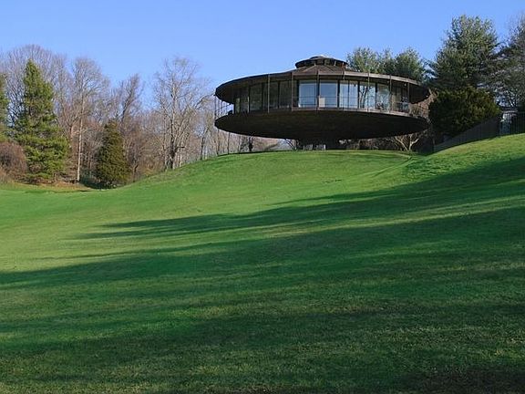 The extraordinary and historically significant 'Round House' creates a serene haven with a fine, subtle line between indoors and out. Walled in glass, the house can rotate 360 degrees capturing beautiful landscaping and water views. Separate guest house and inground pool. Renovated in 2005. Designed by the renowned architect Richard T. Foster assisted by Philip Johnson.